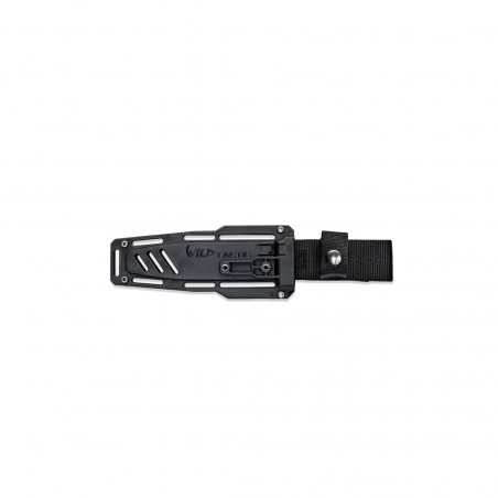 Son manche en Tactiprène, conçu pour offrir une prise en main confortable même gantée, et sa garde supérieure avec une position du pouce très marquée, assurent une utilisation sécurisée. Le couteau est doté de deux trous pour y passer un cordage élastique pour bloquer la main sur le couteau.