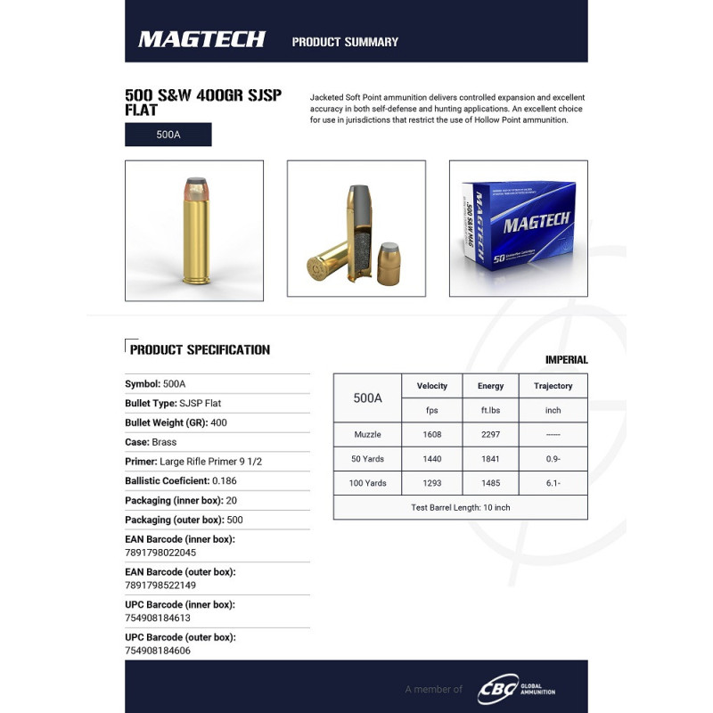 CARTOUCHES MAGTECH CAL 500SW 400GR BT DE 20